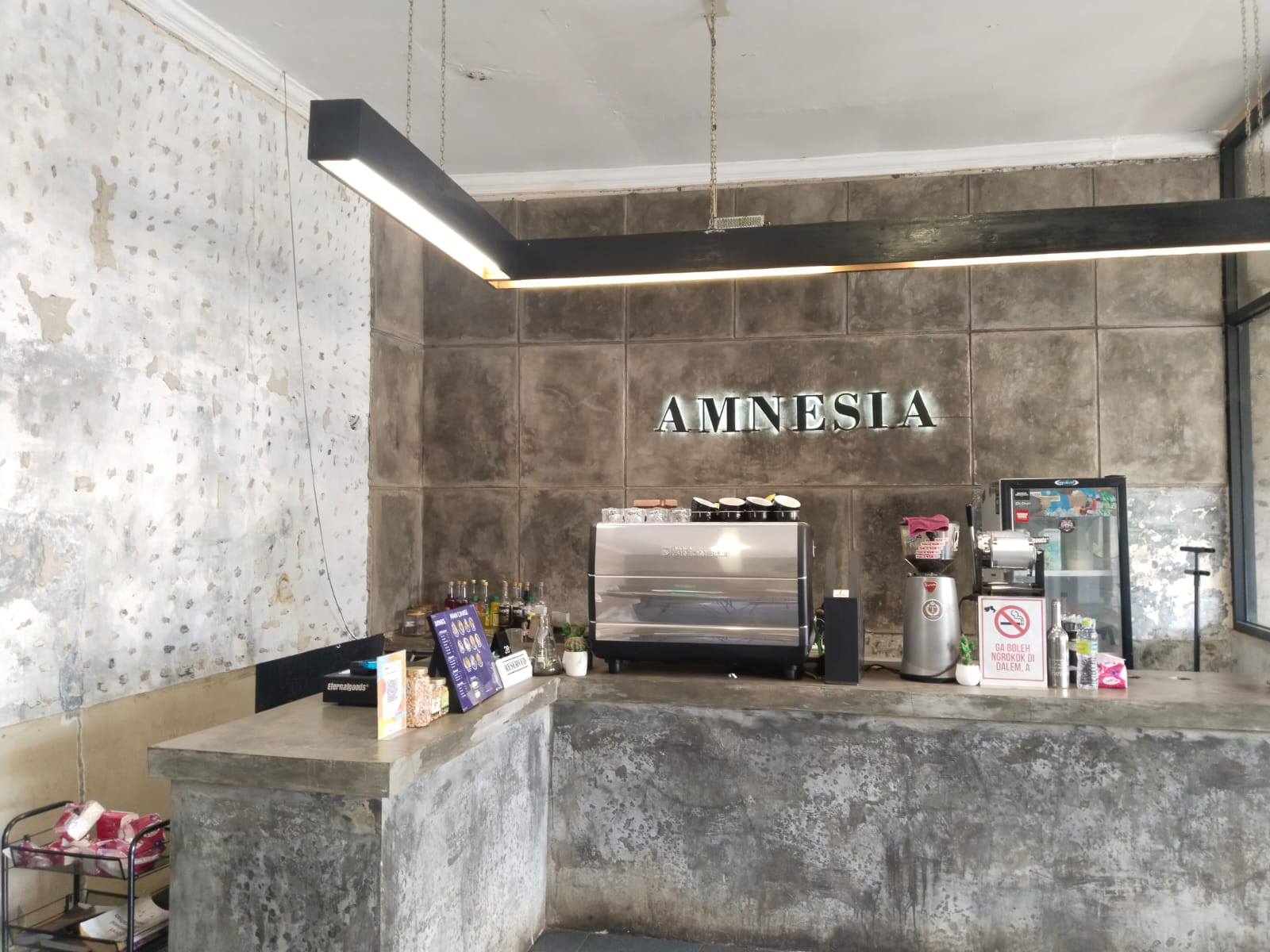 Amnesia coffee and eartery beralamat Jl. Raya Purwadadi Belendung, Kec. Purwadadi kabupaten Subang. Amnesia coffee and eatery menawarkan pengalaman santai dengan dekorasi yang nyaman, cocok untuk nongkrong bersama teman ataupun keluarga. Amnesia coffee and eartery menawarkan berbagai katagori minuman dan makanan sebagai berikut: